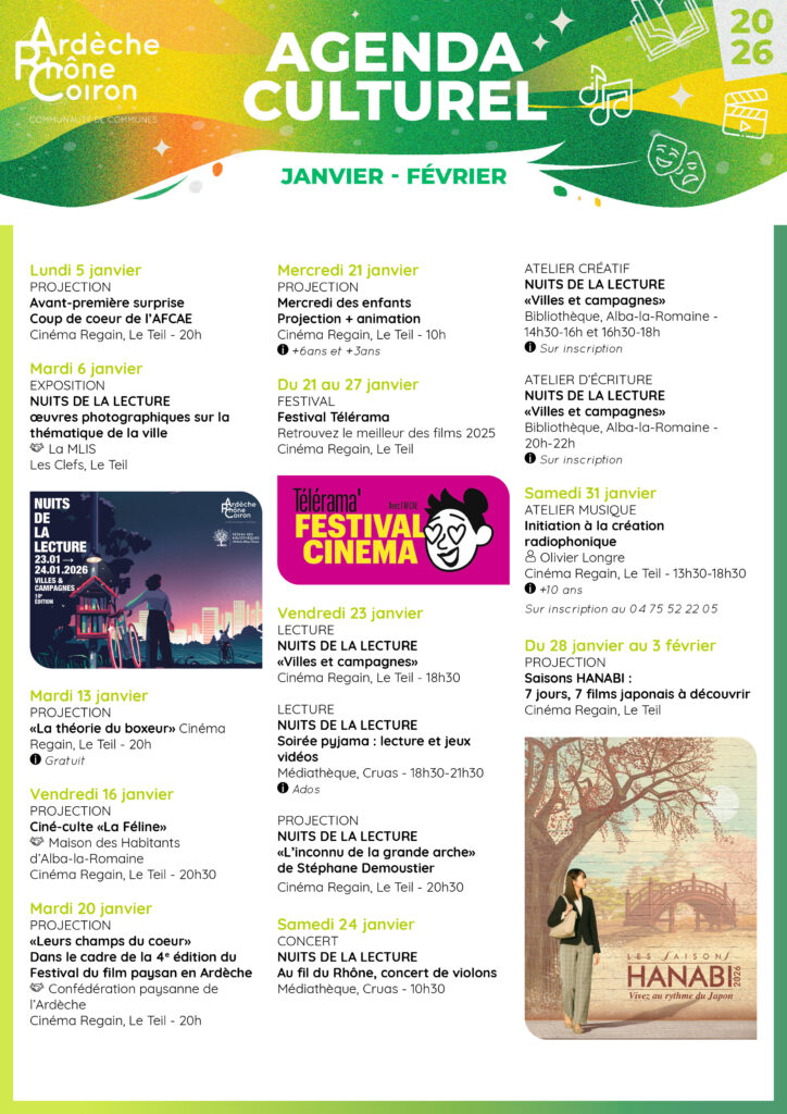 Retrouvez vos rendez-vous culturels sur les 2 premiers mois de l’année 2026.