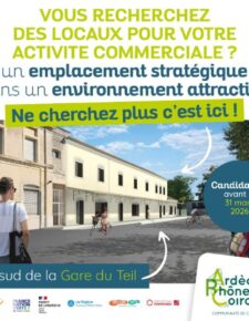 Nous recherchons un ou des porteurs de projets, pour de futurs locaux rénovés à neufs. 4 locaux à louer dans l’aile sud de la Gare au Teil : Lot 1 : 87 m² (RDC) Lot 2 : 96 m² (RDC – terrasse) Lot 3 : 48 m² (R+1) Lot 4 : 88 m² (R+1) Vous