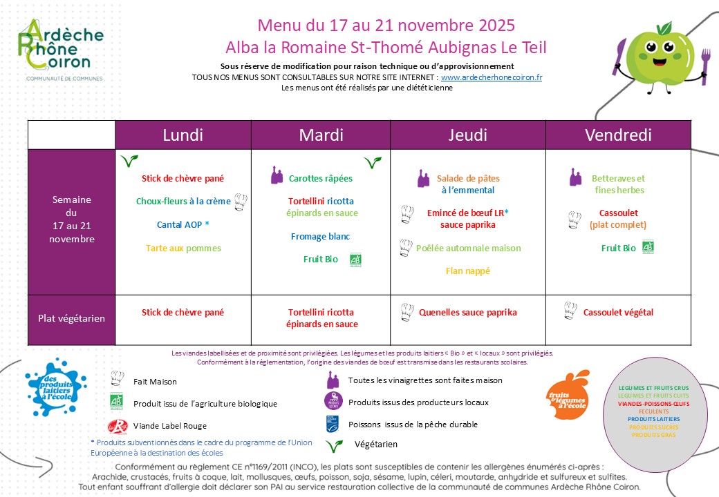 - Menu des communes suivantes : Alba-la-Romaine, St-Thomé, Aubignas, Le Teil – menu d’Halloween le vendredi 7 novembre 🎃