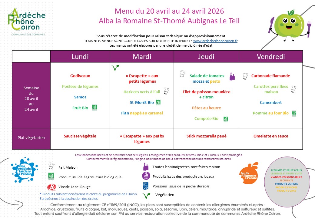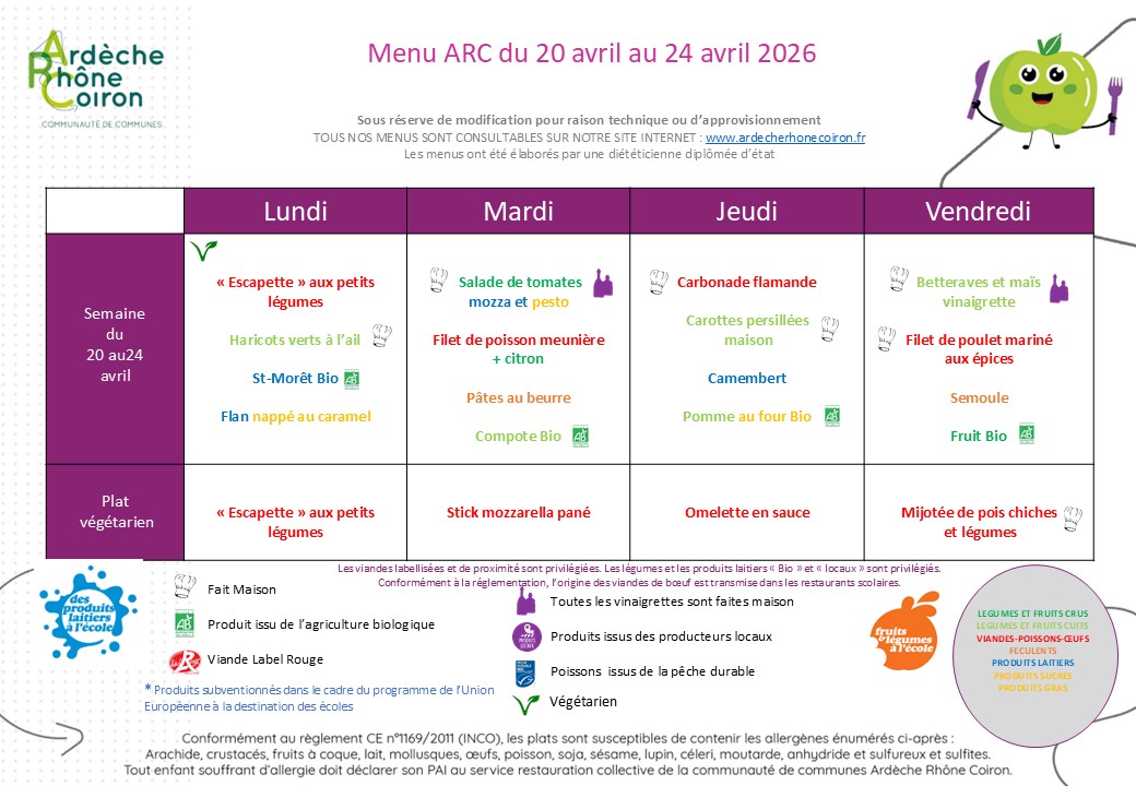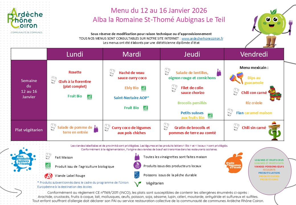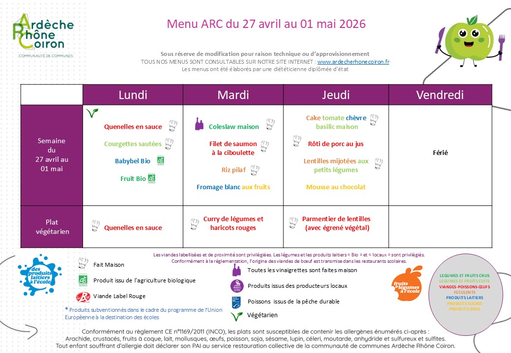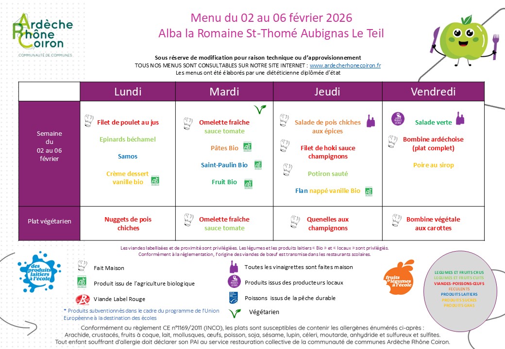 Retrouvez ici les menus proposés pour les semaines à venir 🍽️