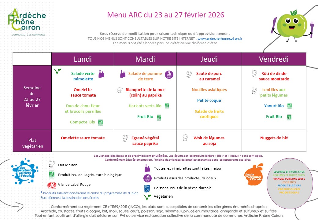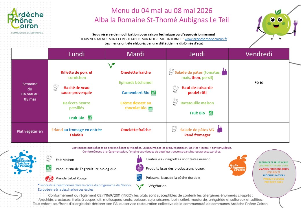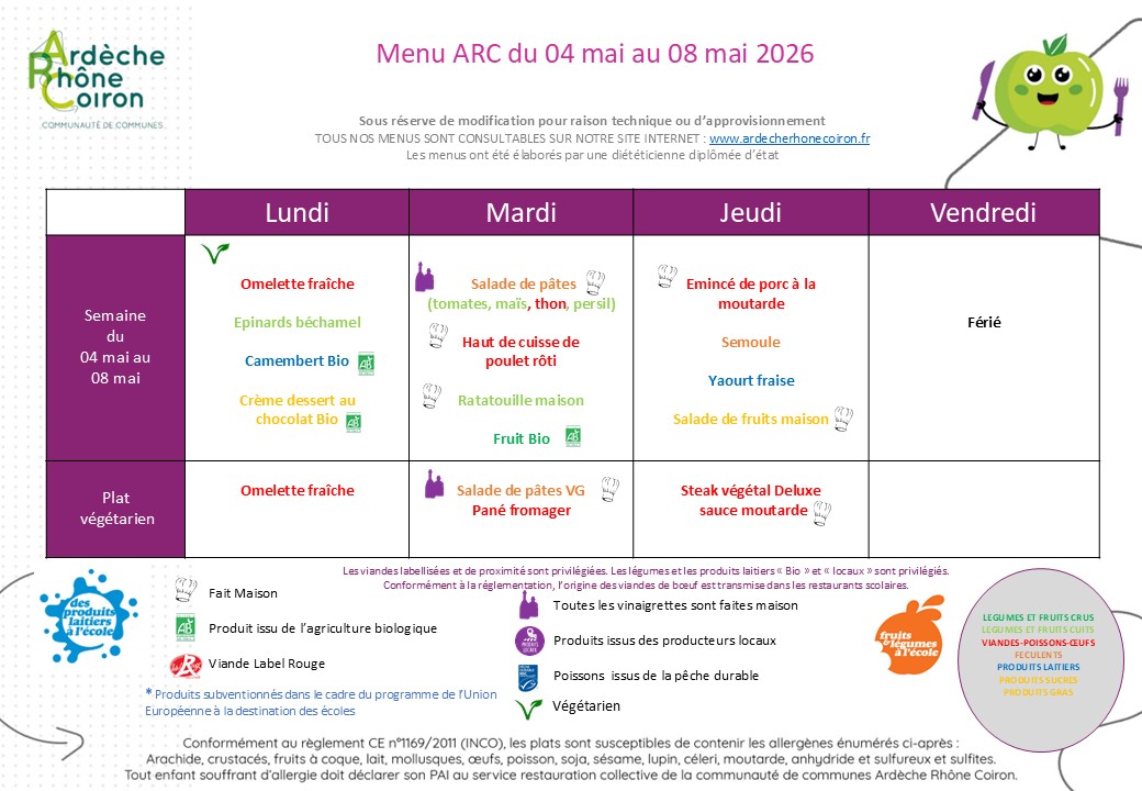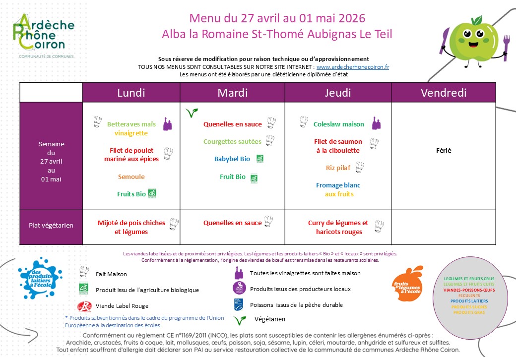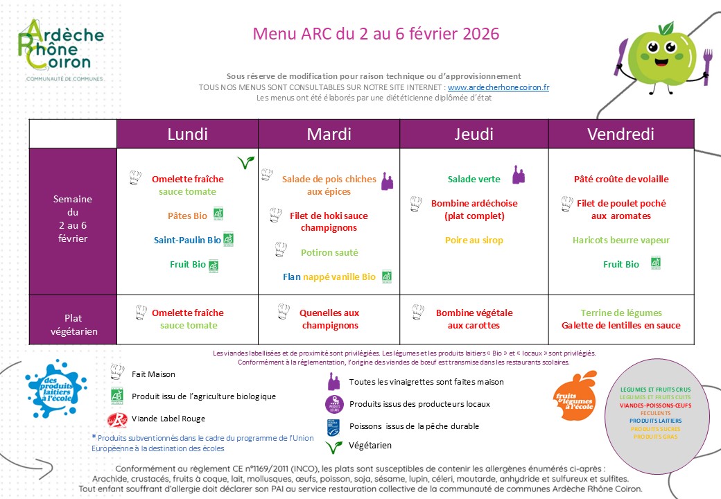 Retrouvez ici les menus proposés pour les semaines à venir 🍽️